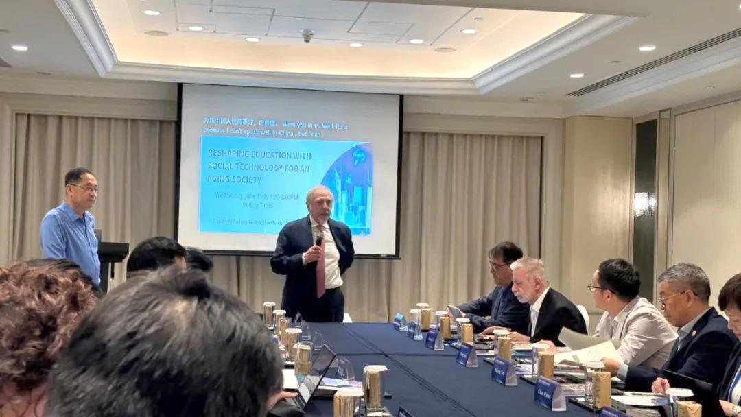 美国医学科学院和文理学院两院院士、哈佛大学教授凯博文教授(Prof. Athur Klienman)凯博文教授在致辞中,强调适老社会科技项目的核心目标是通过社会科技手段,提供改善人类生活质量的适老科技,老龄教育是该项目的重要组成部分。他指出当前大学教育体系在社会服务方面存在不足,呼吁教育回归生活本质,注重培养能改善人类生活的人才。同时,他强调老龄教育在提升老年人社会参与能力和生活质量方面的重要性,认为中美在适老社会科技领域的合作交流对全球老龄教育的发展至关重要。