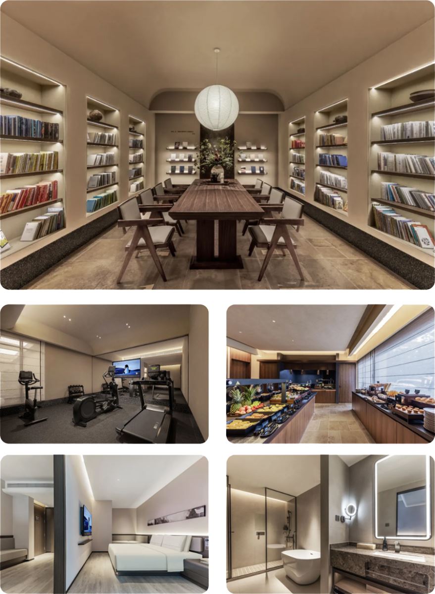 酒店采用亚朵4.0设计风格,以“自然闲寂”为灵魂设计理念, 精准定位为“高品质人文酒店形态”。它巧妙地强调“效率与松弛”的和谐共生,将亚朵村那原始而纯粹的自然元素,巧妙融入繁华都市的酒店空间之中,营造出一种“拨尘见野”的诗意意境。通过匠心独运的空间设计、贴心周到的服务配套,以及与在地文化的深度融合,为每一位宾客精心打造了一处都市中的避世山谷。在这里,奔波忙碌的旅人可以寻回内心深处的宁静力量,拂去都市生活的喧嚣与浮躁,重拾最本真的自我,回归精神的原乡。