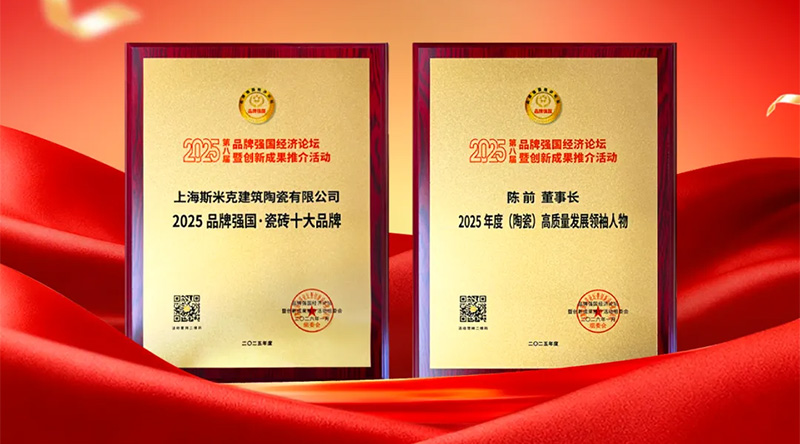 活动期间,组委会还隆重发布了《2025品牌经济创新发展案例成果报告》,凭借在瓷砖领域的持续深耕与突破性创新实践,斯米克磁砖从众多参选企业中脱颖而出,上海斯米克建筑陶瓷有限公司荣获2025品牌强国·瓷砖十大品牌,上海斯米克建筑陶瓷有限公司董事长陈前荣膺2025年度(陶瓷)高质量发展领袖人物。